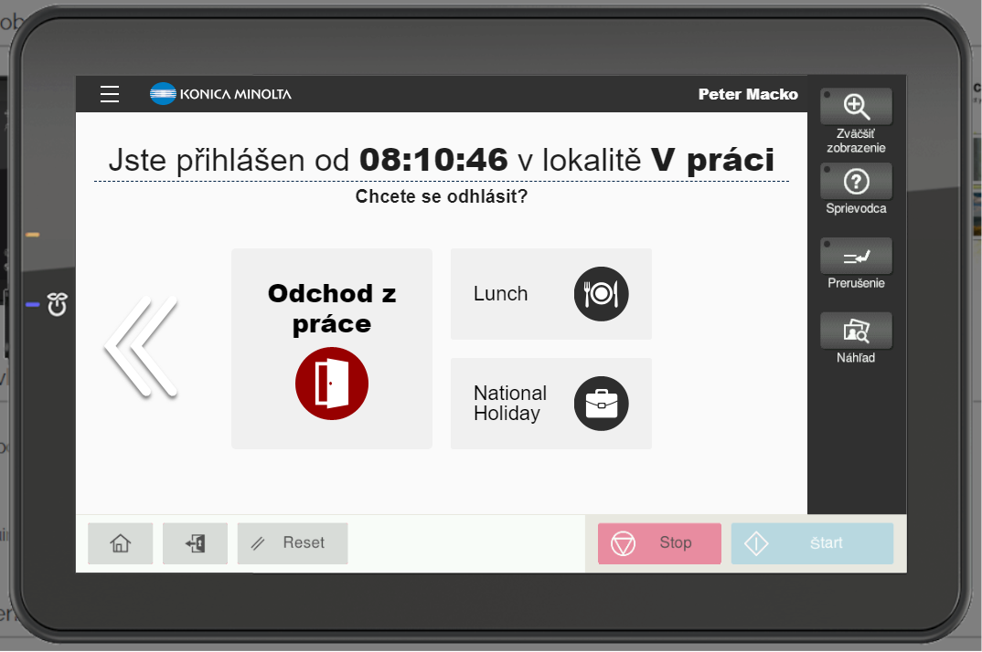 Investícia do riešenia dochádzkového systému vás vôbec nemusia vyjsť draho. Ak už vlastníte multifunkčné zariadenie Konica Minolta, vystačíte si s niekoľkými € mesačne. Všetko, čo vám totiž stačí, je panel multifunkcie.